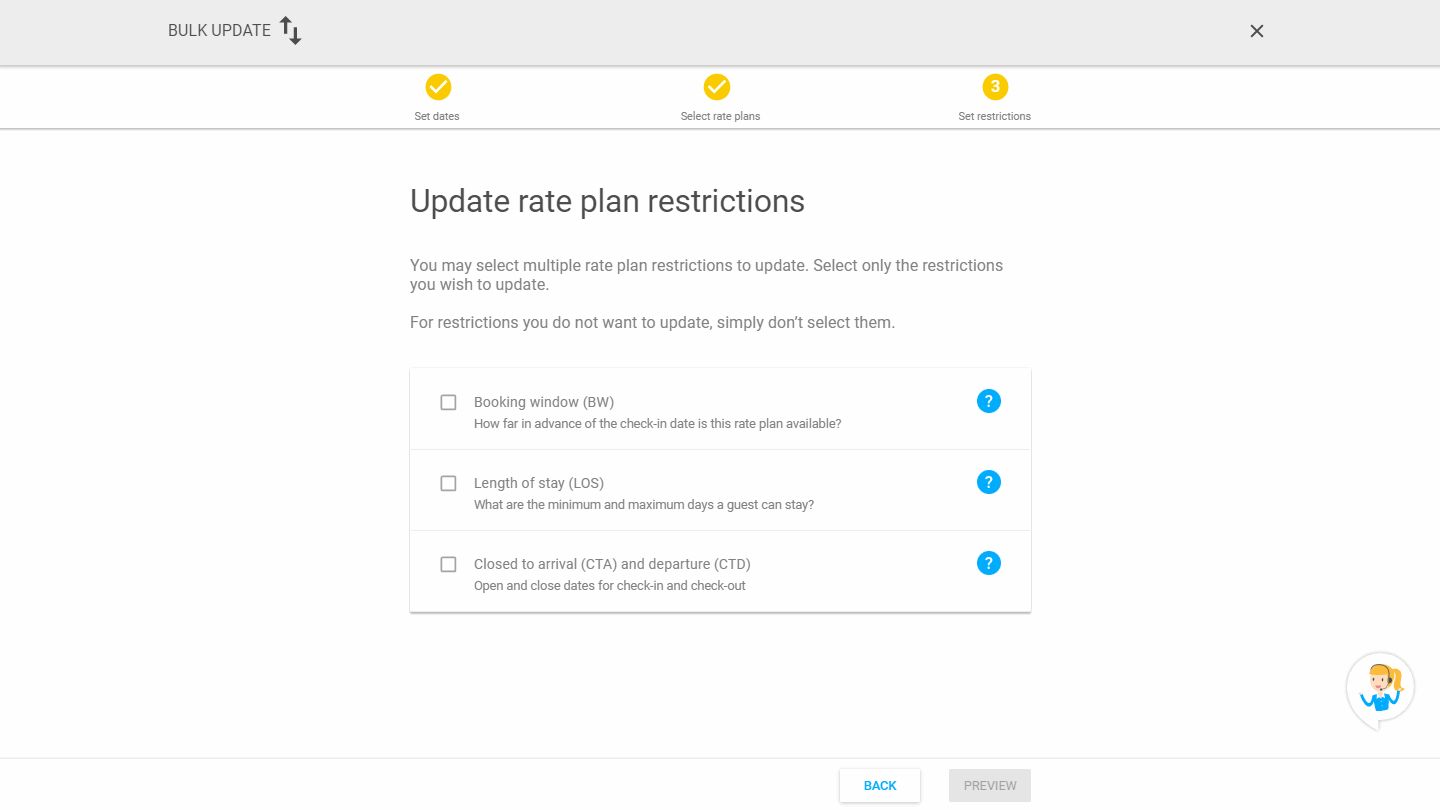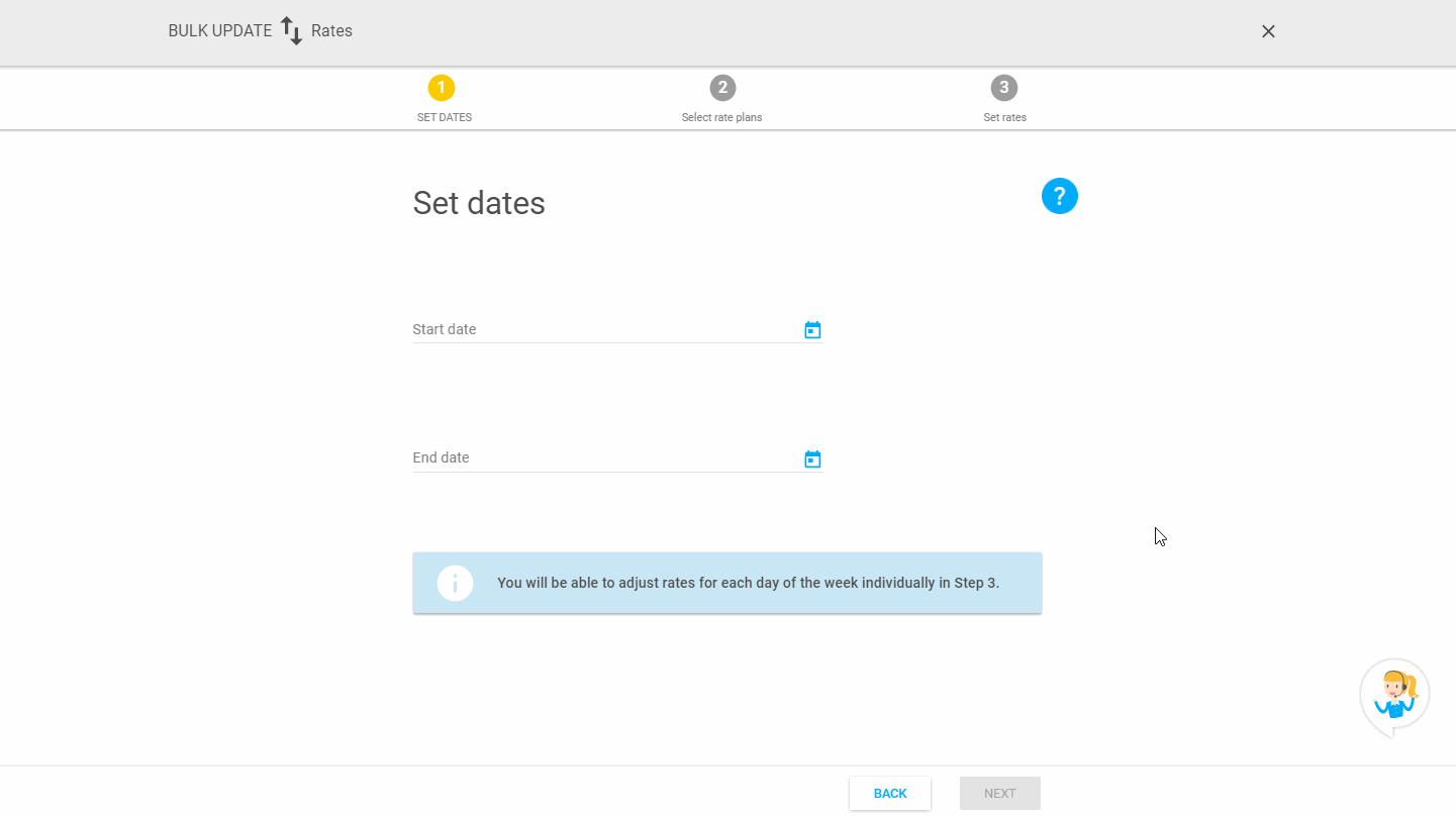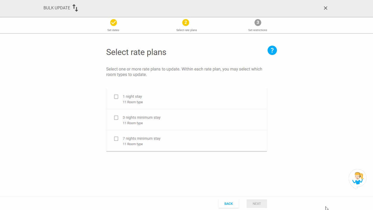 To update your rates, click on “BULK UPDATE” in the top right corner of the Calendar section, and then on “Rates”.